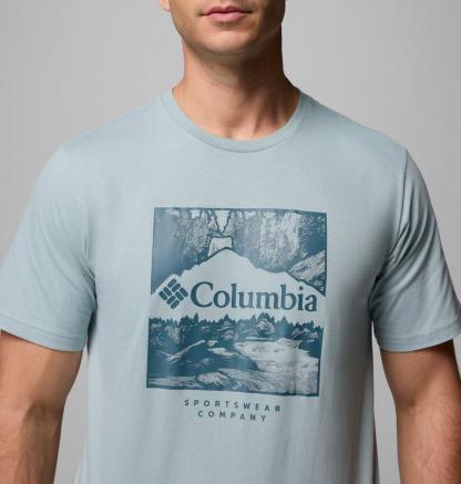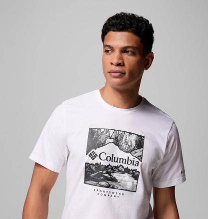 A classic vintage graphic print Columbia logo on the chest creates a retro look.