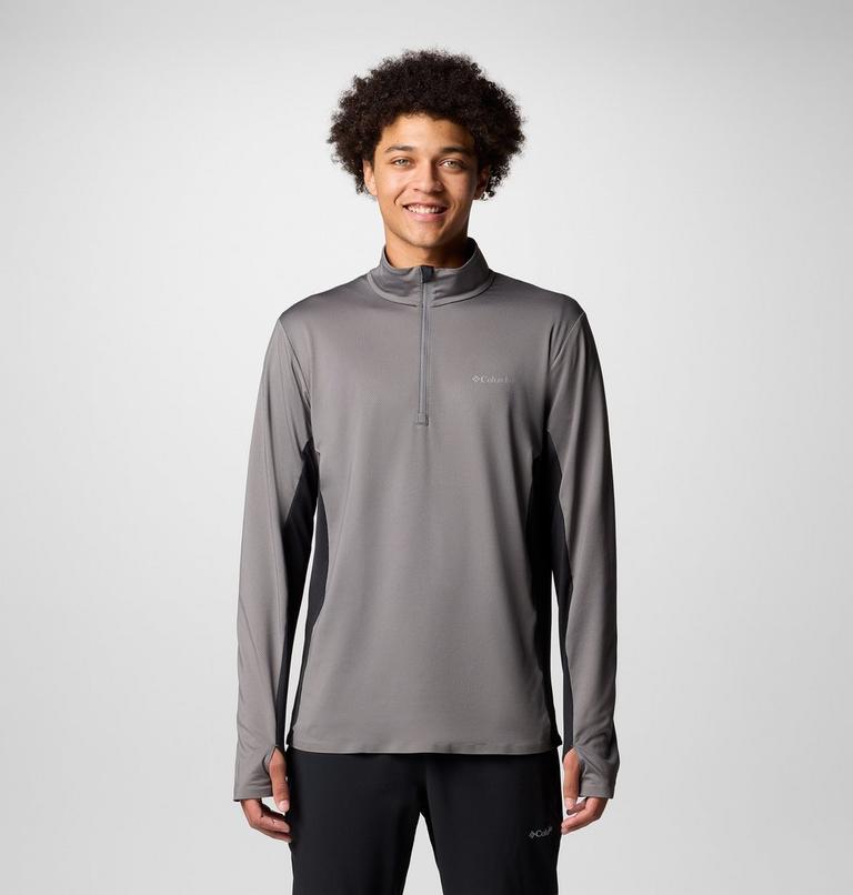 Move, stretch and flex with ease in this half zip made with stretch fabric and handy thumb holes for a comfort fit.