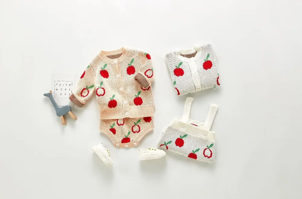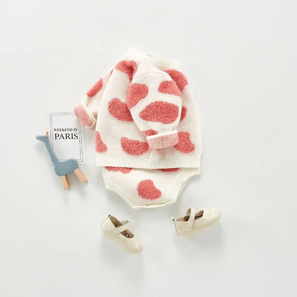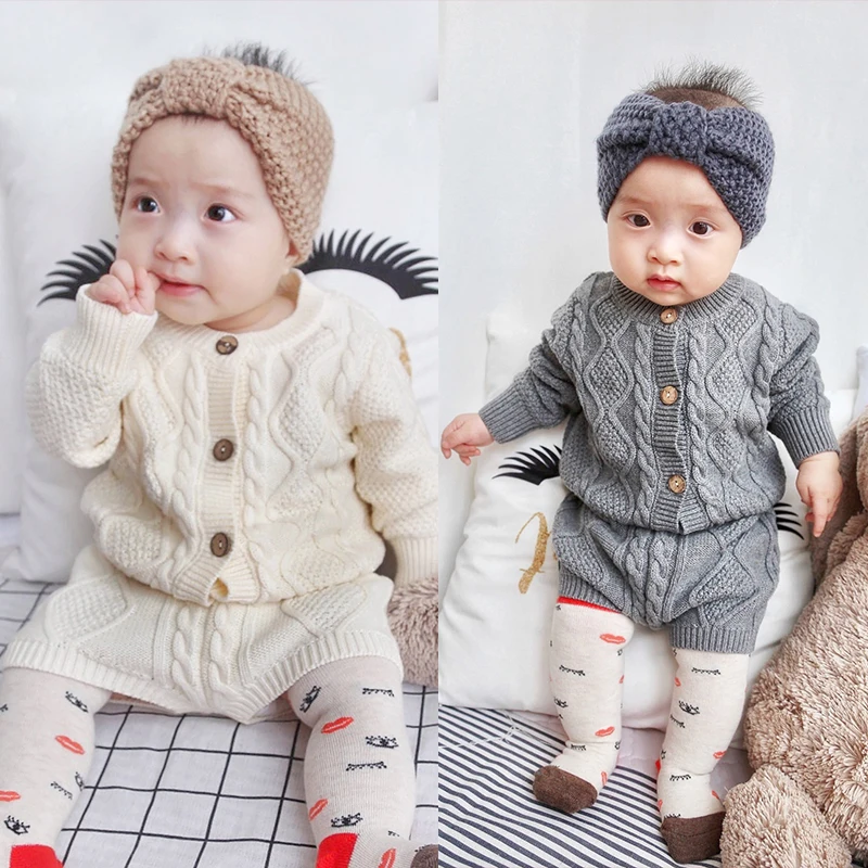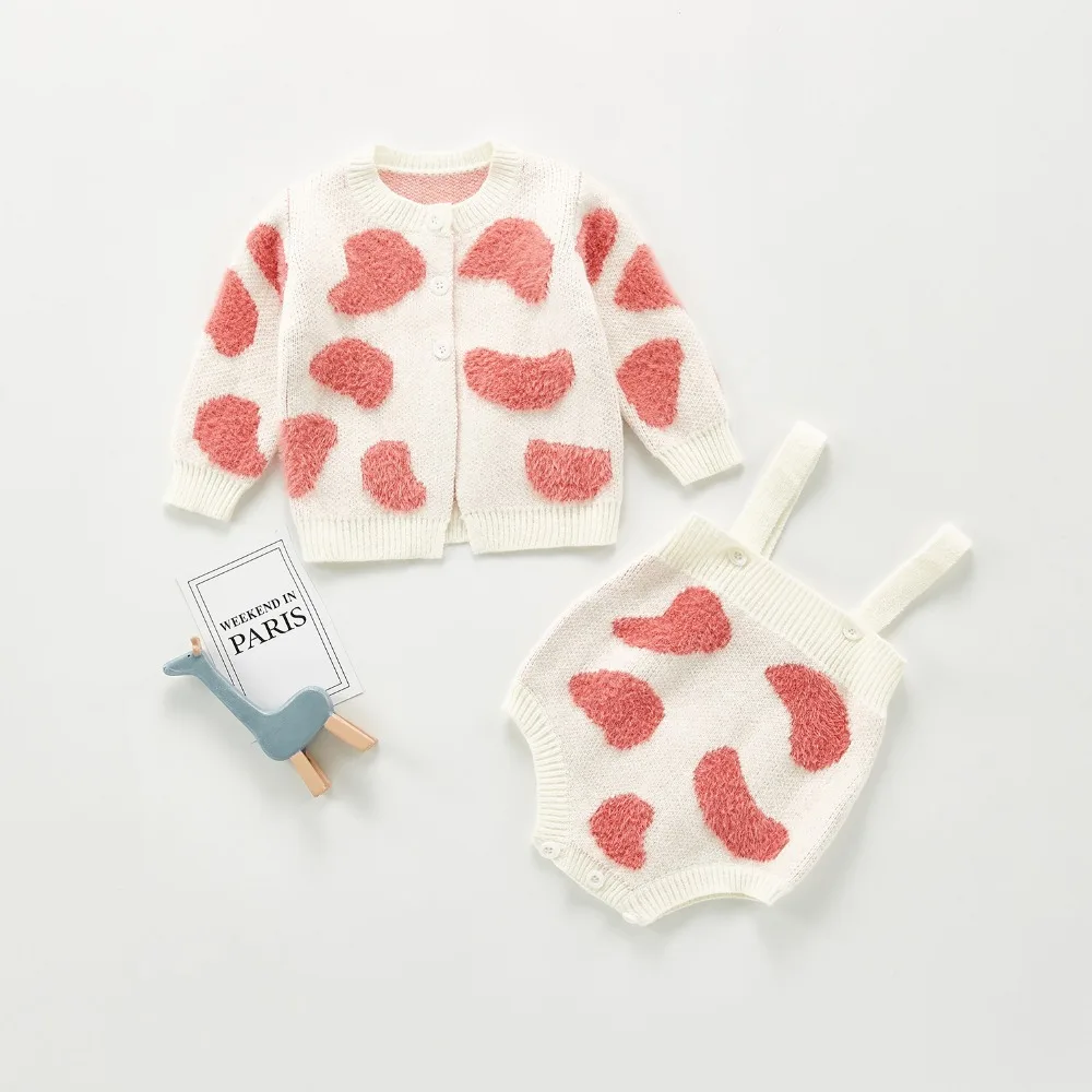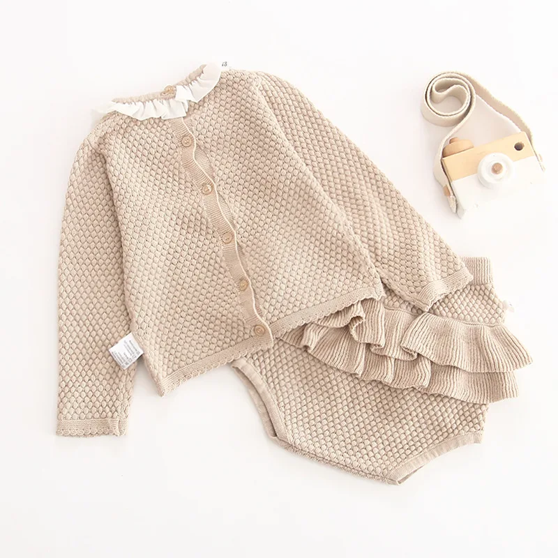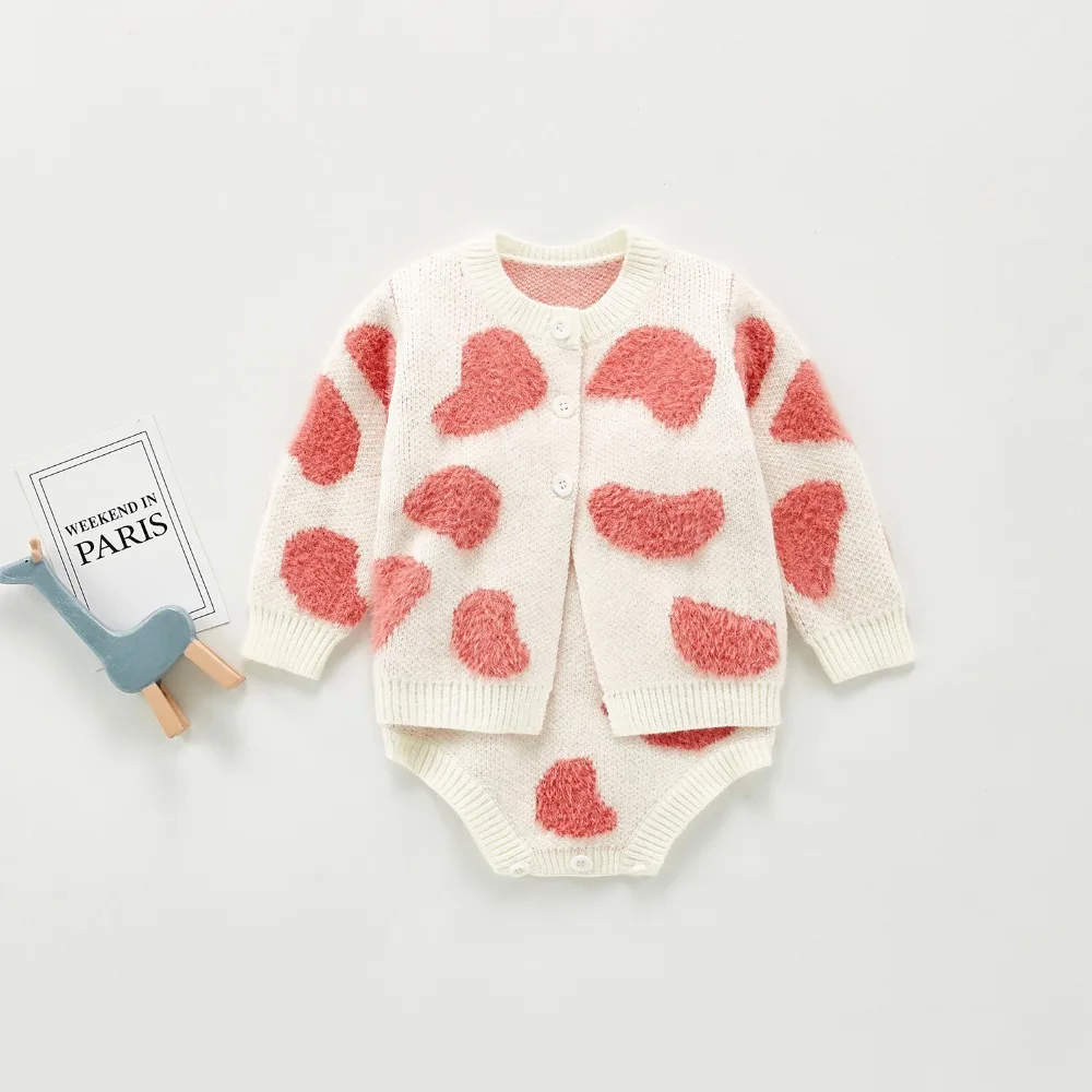A beautiful baby knitted sweater romper is a must-have for your baby's wardrobe. Featuring a round neck, with ruffle shoulder, embroidered pretty floral, and press studs in the crotch. A classic style in a soft and comfortable texture. It comes with a cardigan sweater that has a front closure button. This baby girl knitted sweater romper set makes a perfect outfit for photoshoots too!