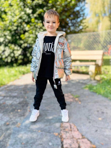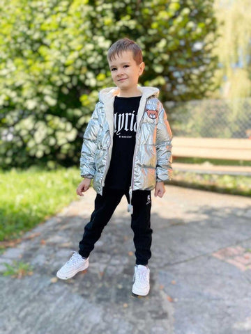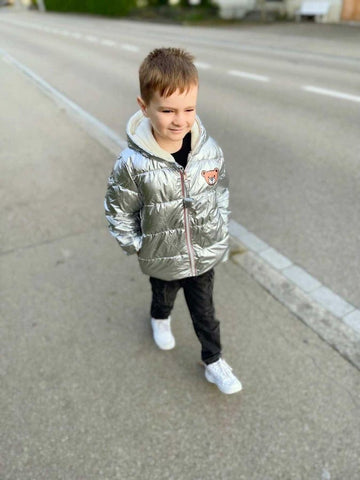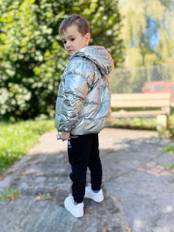 Keep your kids toasty warm and look stylish in a shimmering metallic style winter hooded padded jacket. Featuring hood and closure zip on the front. It is made from thick and soft fabric which is perfect for winters. A hooded puffer jacket to keep your little cozy and warm from breezy days.