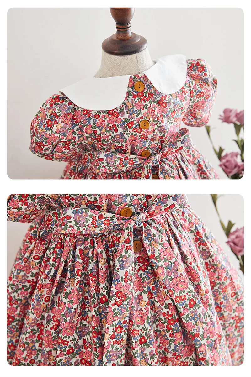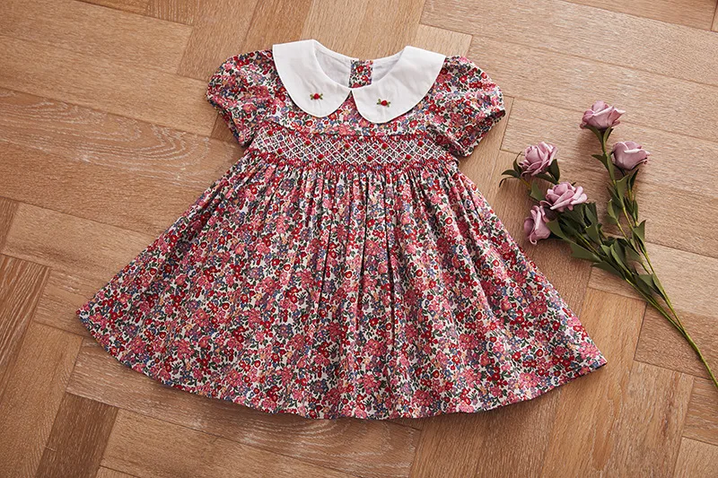 Nothing ignites the imagination like swinging on the swing under the tree with the smell of candyfloss. A beautiful floral dress just for lovely little girls. This dress has smock details at the front. It is made of soft fabric and lightweight materials. Ideal for birthdays, parties, Christmas, or any special event.