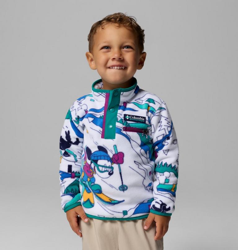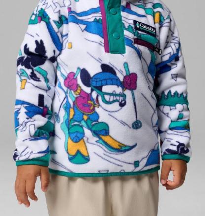 Keep them warm in this special-edition fleece with ‘90s-inspired prints featuring Disney’s Mickey & Friends on a dream ski vacation. With binding on the cuffs and hem, cold stays out and warmth stays in.